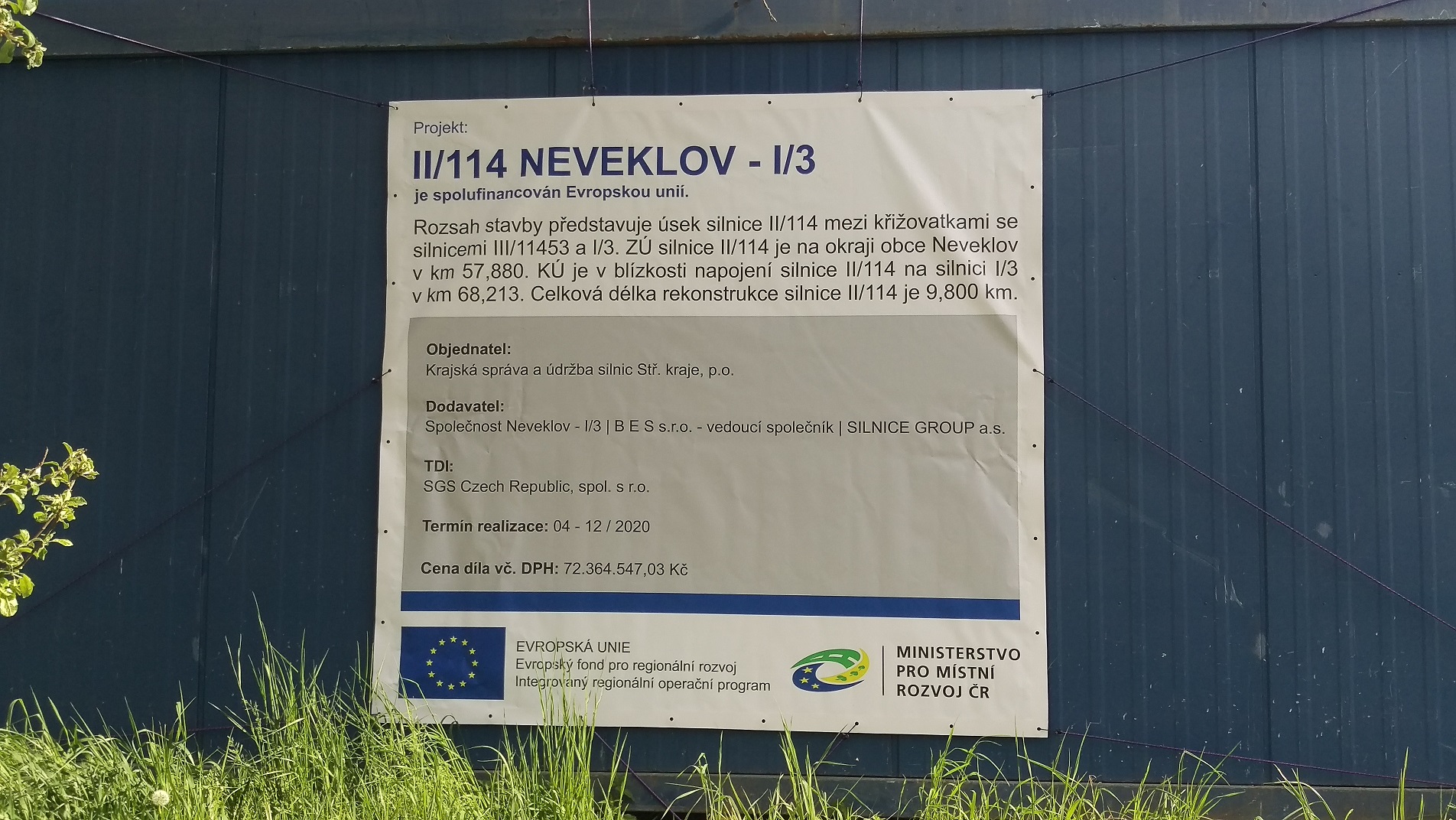 Registrační číslo projektu: CZ.06.1.42/0.0/0.0/17_082/0010568Dne 14.04.2020 proběhlo předání staveniště k akci „II/114 Neveklov - I/3"