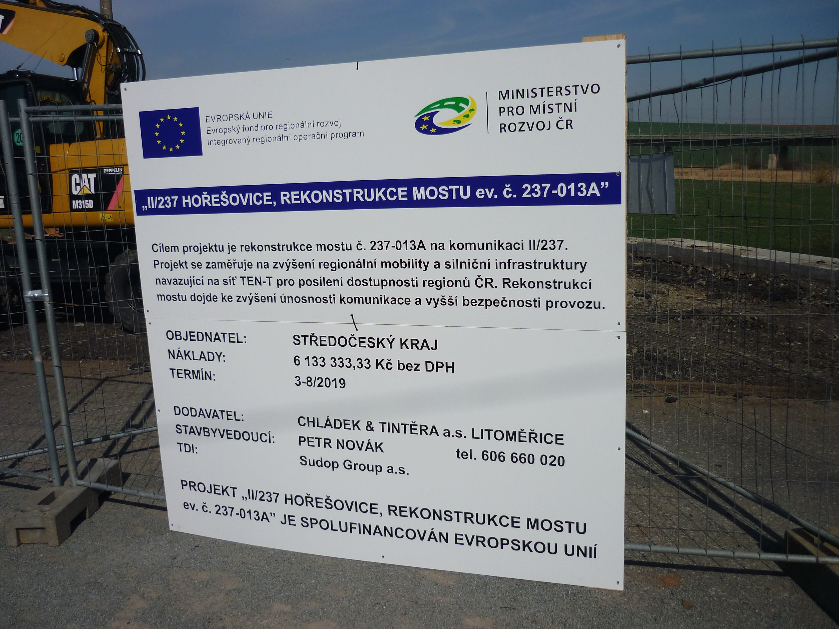 Doba realizace: 23 týdnů od předání staveništěProjekt „II/237 Hořešovice, most ev.č. 237-013A" je spolufinancován Evropskou unií.