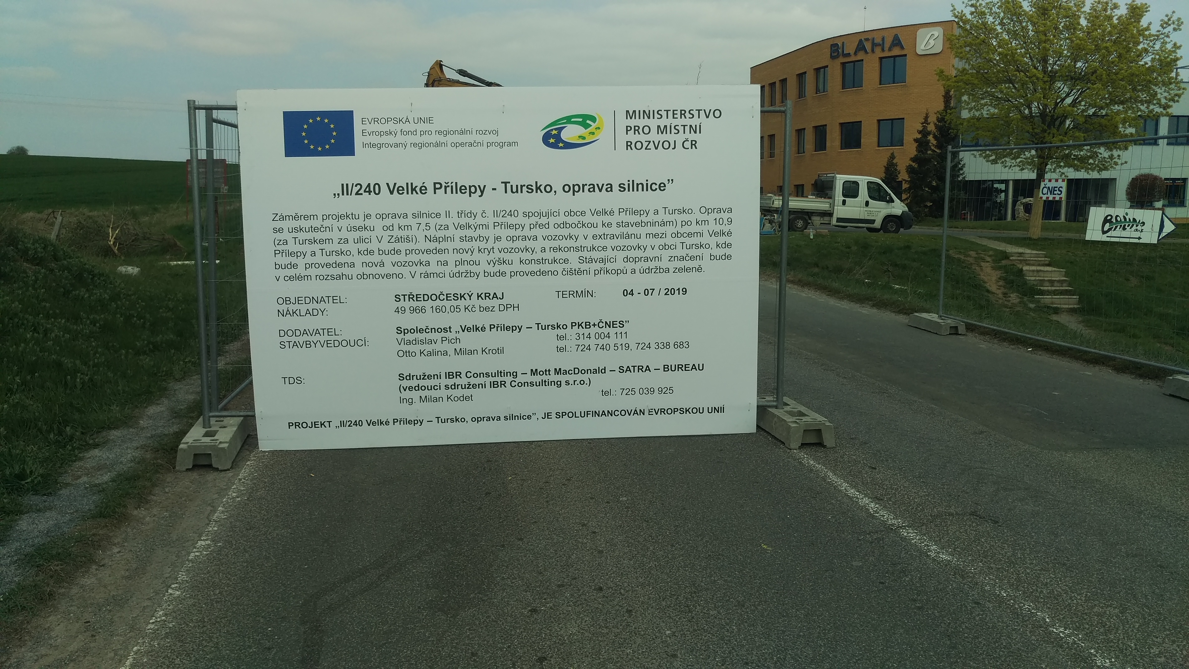 PROJEKT „II/240 Velké Přílepy - Tursko, oprava silnice" JE SPOLUFINANCOVÁN EVROPSKOU UNIÍ.