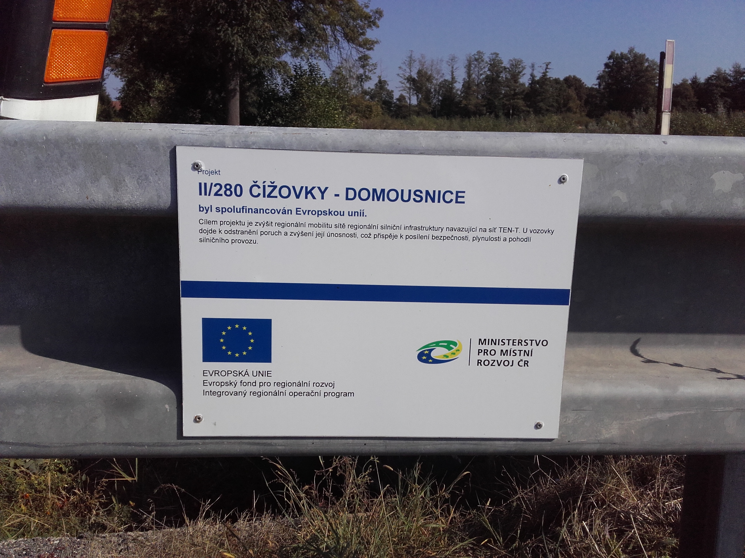 PROJEKT „II/280 Čížovky - Domousnice, rekonstrukce" JE SPOLUFINANCOVÁN EVROPSKOU UNIÍ.