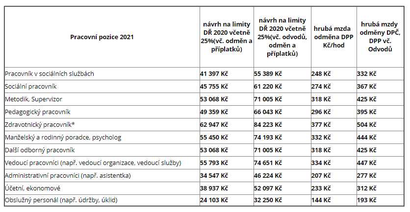 Maximální možné mzdové limity pro rok 2021 jsou v rámci projektové dotace závazné, nikoliv doporučené.