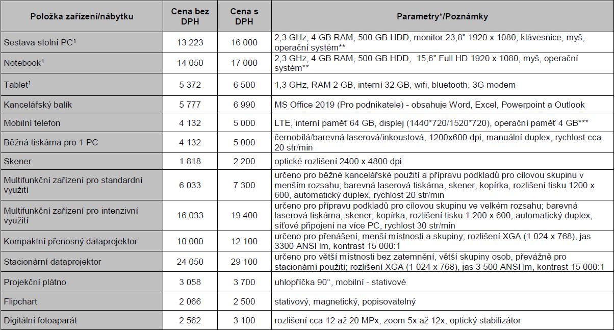 dovolujeme si Vás informovat, že dne 1. 6. 2020 vešla v platnost tabulka Obvyklých cen zařízení a vybavení ze strany ESFCR/OPZ týkající se projektové dotace viz níže. Výše doporučených cen uvedených zařízení mohou být předmětem veřejnosprávních kontrol. Doporučujeme uvedené ceny dodržovat. Vyšší ceny bude pak nutné na žádost kontrolujícího orgánu zdůvodnit.