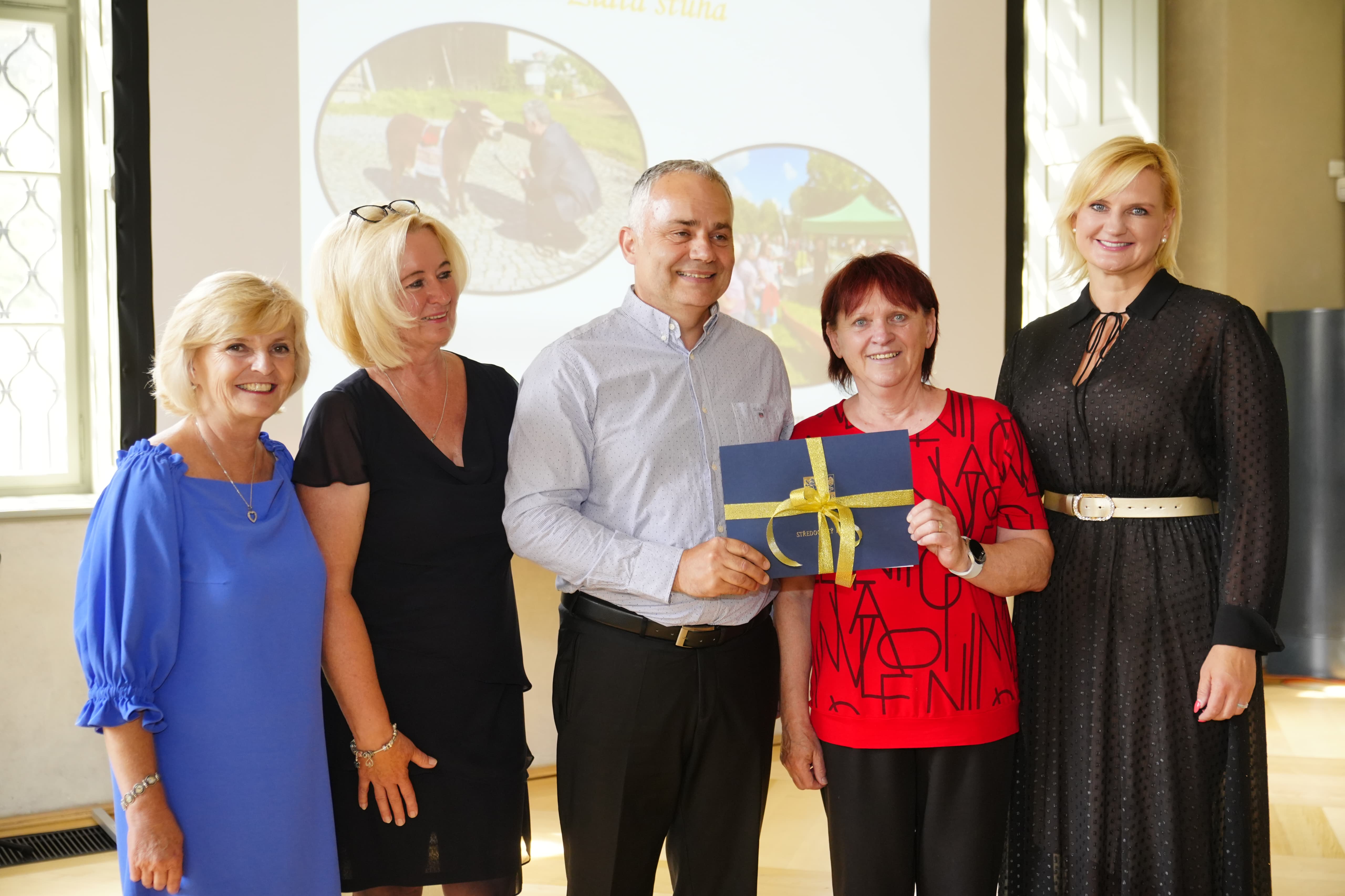 Zástupci vítězné obce Kosova Hora s hejtmankou Petrou Peckovou.